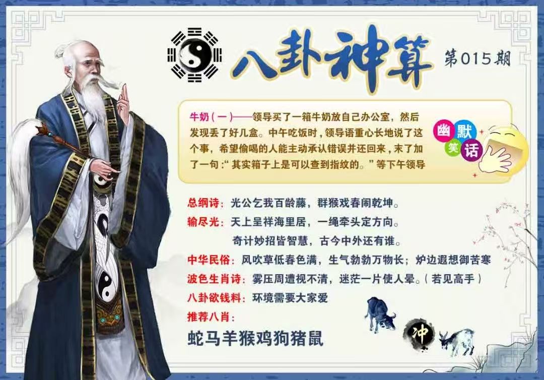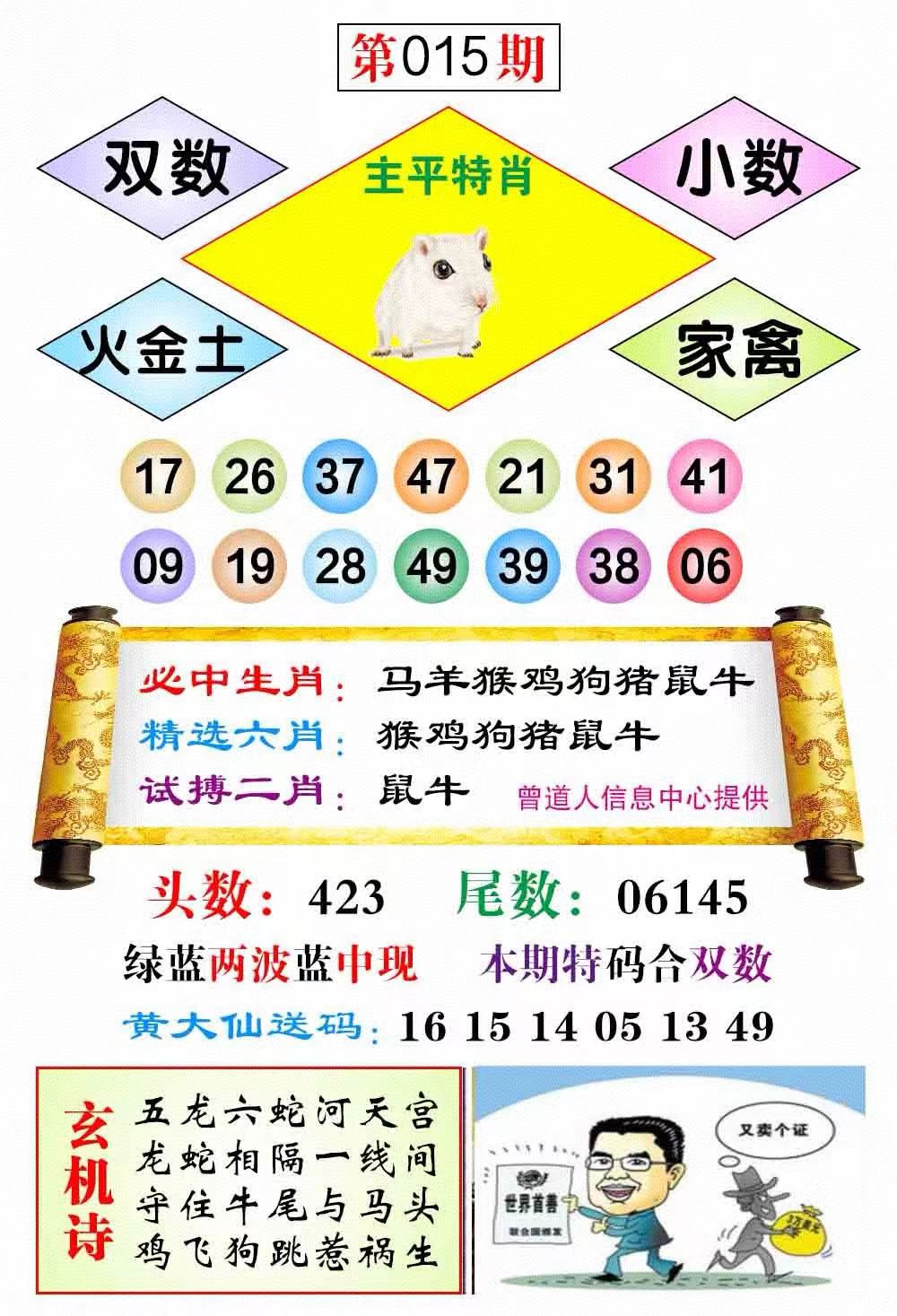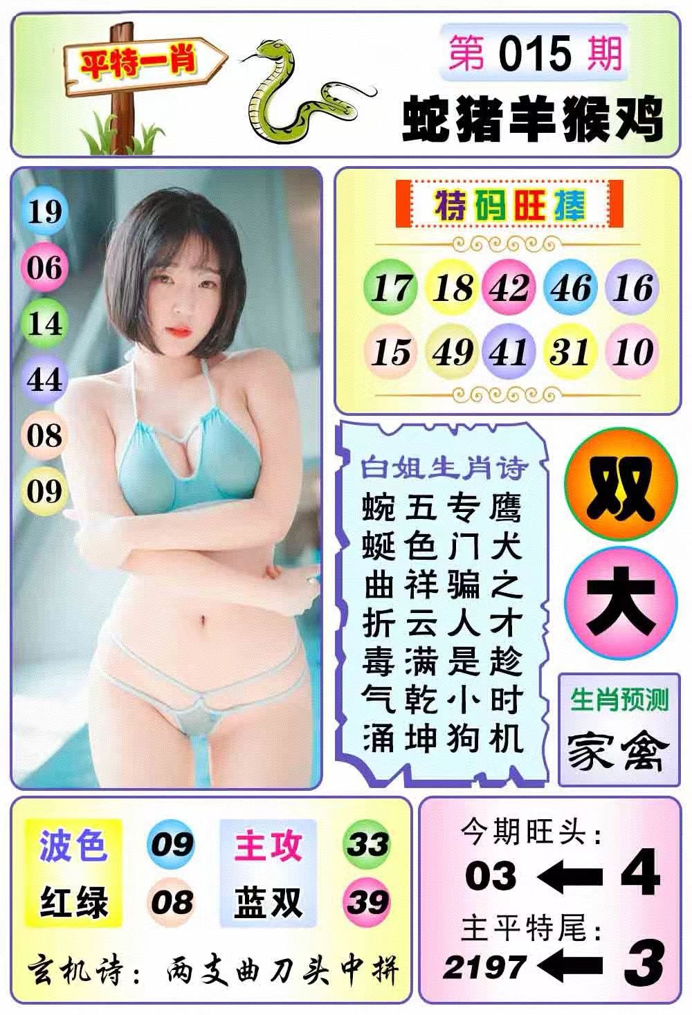 | 015期 | 红波+蓝波 | 家禽+蛇虎 | 双数+兔猪 | 2.0尾 |