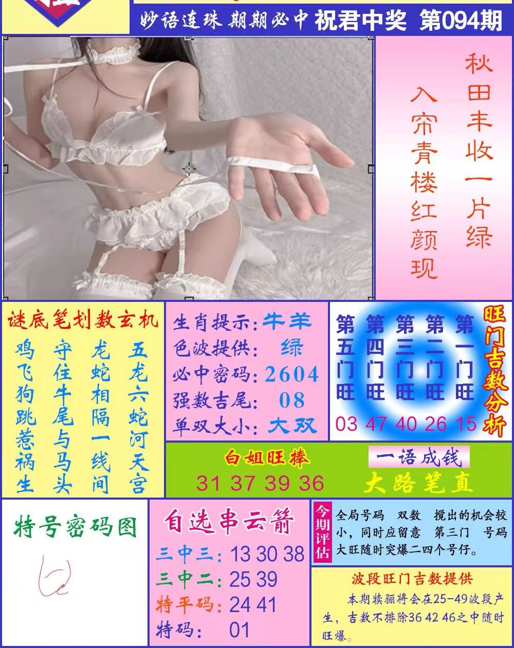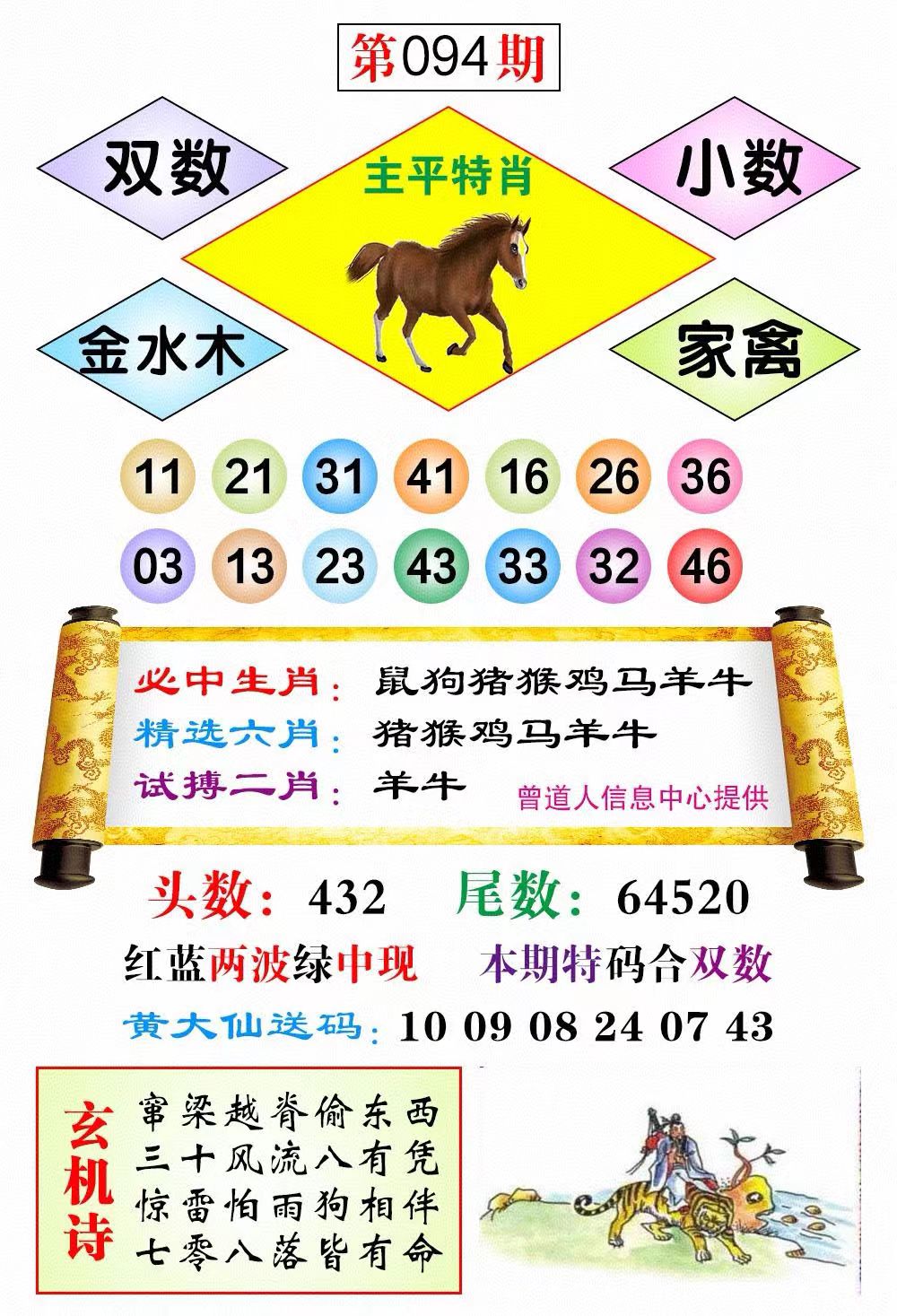 | 094期: 助您横财<羊>稳坐钓鱼台 开:?00准 |